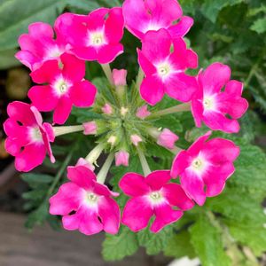 いつも仲良く輪になって咲いているバーベナさん💕この子たちは挿し芽の子たちです✌️何回挿しても、ほぼ100%成功します‼️ お花育てるの初心者なわたしでも、失敗しない強い味方です🥰 この子はすごく色が濃くて、挿し芽した10センチくらいの苗から咲いちゃいました🤗