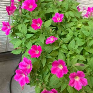 こんばんは🤗 ちょっとお花小さくなっちゃってるけど、サフィニアブーケがまたしても、たくさん咲いてきた🥰🤗💓 この色、かわいくて好きです❣️