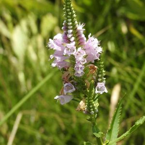 ハナトラノオ ひまわり ハナトラノオは夏から秋にかけて、全国いたるところでよく見かける花です。 優しいピンクの花が群れ咲く様子は、残暑の中でも、つかの間の涼しさを感じさせてくれます。 フィソステギア属には15種ほどがありますが、栽培されるのは、ほとんど本種(Physostegia virginiana)です。 北アメリカ東部原産で、日本へは大正時代に入り、丈夫でよくふえるため急速に広まり、現在ではポピュラーな宿根草の一つになっています。 カクトラノオとも呼ばれるように、花穂は細長い四角錐で、花は四方に向かって規則正しく並んで咲きます。 ありふれた花ですが、よく見るとなかなか美しいもので、一つ一つの花の形もユニークです。性質が強く、地下茎を伸ばして広がり、ほとんど放任栽培でもよいくらいです。濃桃色のものから白花まで、いくつかの品種があり、草丈や開花期にも幅があります。