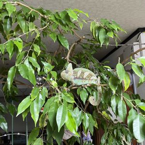 こんにちは☁️ 今日のお花ベンジャミン! 我が家に来てから32年以上 子供達と一緒に育ち天井に届くまでになりました🌿 今は パスカル(エボシカメレオン)のお家になっています💕🤣