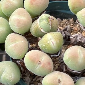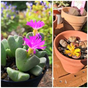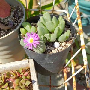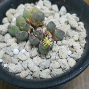 多肉植物 コノヒィツム 可愛いお花が咲いています𓂃 𓈒𓏸ꕤ*.゚ ♪アノコガホシイ~♡コノコガホシイ🎶 ひと鉢驚く程お安かったのよ~♡ 1個空いているのは、隣の誰かさんが 買っちゃったから穴が空きました~♡ 私は、他のお買い物がたくさんあったので、 今回は、諦めました💧