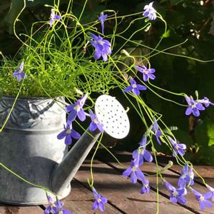 ロベリア パラシオンブルー ひんやりした空気が気持ちいい朝です。 テレビから「今日も一日頑張りましょう」と女子アナ。「はい!頑張ります!」と返事する私。