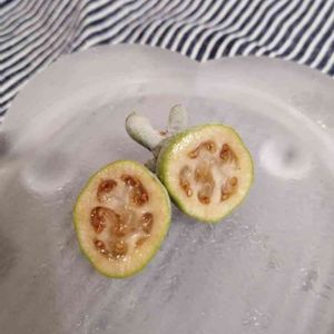 フライング気味にフェイジョアを食べてみた😋🎵 やっぱりまだ酸っぱい✨
