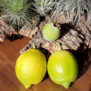 今年やっと収穫できた、フェイジョアの実🍐 たった一個ですが嬉しくて直ぐにでも食べたくなっちゃいますが、そこは我慢しますよ~折角なので追熟させて美味しく頂きたいですものね(-o-)/ 追記…この後1週間後に食べてみました😋ですが、何と表現したら良いのか?不思議な味でした。 甘くジューシーなのに、ちょっと癖のある…桃や梨やキウイ🥝見たいにハッキリした味ではないかなぁ~😄 でも収穫出来て嬉しいですけどね☺️ レモンも🍋たった2個の収穫でした😢 ですが、やっぱり我が家で取れたものは嬉しいです😃💕香りと味が違いますよ~ジューシーで優しい味です🎵 説明してるだけで生唾が…🤤