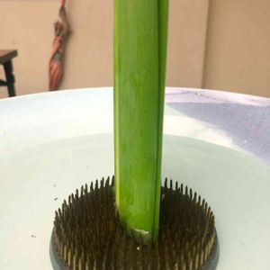 本日のお稽古 立花正風体 今日は胴内の入れ方を詳しく説明してもらって納得~📋🖊️ あえて横向きにして、一本で胴の間2ヵ所から見えるようにしています|д゚)チラッ
