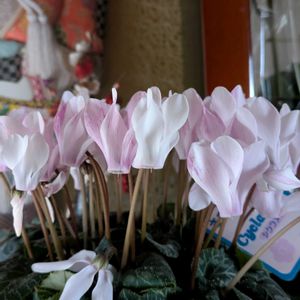 お花は小振り ミニシクラメンになるのかな🩷🤍 知り合いからの頂き物