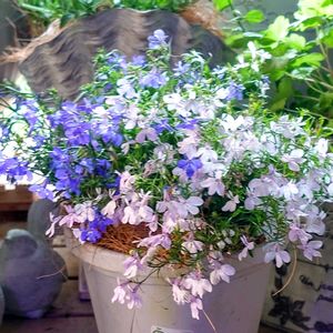 *+:夏花開花中.。:+* アンゲロニアエンジェルフェイス開花し始めました 無事に咲き続けてるアズーロコンパクトもまた満開になってます(*˘︶˘*).。.:*♡ 今年は夏の定番トレニアは3つの品種で寄植え作りまくりました ꕤサントリーフラワーズサマーミスト ꕤトレニアムーン ꕤスーパートレニアカタリーナ スーパーチュニアビスタシルバーベリー ばっさり切り戻して、切り花鑑賞