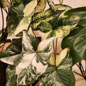 シンゴニウム レッドスポットトリカラー ご覧のとおり葉柄に緑・白・ピンクが入る種です😄 葉形もミッキータイプや三つ葉タイプなど様々で葉色と容姿のどちらも変化があって面白いシンゴニウムです🤗
