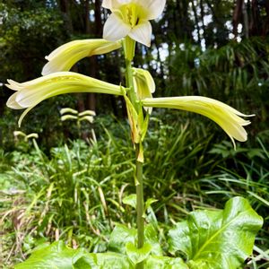 久しぶりにウケユリ(請百合)に出会うことが出来ました。 ウケユリは日本固有種のユリの一つで鹿児島県の奄美諸島などの限られた場所にしか自生していないかなり貴重なユリです。 名称は自生地の一つである請島(うけじま)に因んで名付けられました。 自生地では生育環境の悪化や盗掘、猪による食害などによって急速に個体数が減少し絶滅が心配されております。 環境省のレッドリストでは絶滅の危険性が極めて高い「IA類」に分類されており鹿児島県では天然記念物に指定されています。 自生ものではありませんが久しぶりに出会えて良かったです。 『🏷️太陽がくれた季節a』 『🏷️白輝美人』 『🏷️2025年櫻鐵ユリコレクション』