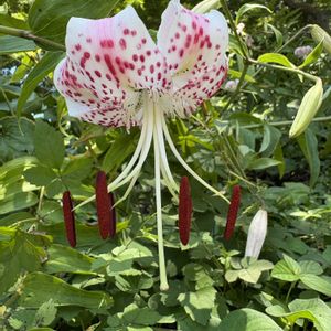 暑中お見舞い申し上げます。 今年もウチダカノコユリ(内田鹿の子百合)と出会うことが出来ました。 ウチダカノコユリは第二次世界大戦後に神奈川県横浜市の内田昌男氏がシマカノコユリから選抜育種した園芸品種です。 カノコユリよりも花被の幅広く濃桃色でウィルス病に強いく耐病性が高いのが特徴です。 『🏷️太陽がくれた季節a』 『🏷️桃色百花繚乱』 『🏷️2025年櫻鐵ユリコレクション』 🙇🏻お詫び 本来はカノコユリ(鹿の子百合)を紹介したのですが誤ってウチダカノコユリ(内田鹿の子百合)の写真を掲載してしまったため訂正させて頂きました。