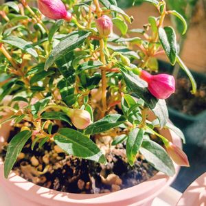 今日は洗濯物が、 しっかり乾くくらい日差しが 強かった(ノ*・ω・)ノ▁▂▃▅▆▇█▓▒ 先日、連れ帰ってきたフクシア つぼみを付け始めました👀✨ 中華の桃饅頭みたいで可愛らしい💖 これこそ、 🍑カクレモモジリみたいWWW アベリアも次から次へと花が開き 何だか爽やか❀.(*´▽`*)❀. 小さな小さなつぼみも、これまた可愛らしい💖 って、思いながら プリンセチアの鉢が気になり 底を見てみると、 やっぱり根が出てる(´・Д・)」 引っこ抜いてみたら、 案の定、パンパンだ。 なので、大きい鉢にすっぽり入れ替えてみた。 ふと思う。 大っきくなったもんだ……( ゚д゚)スゲェ 根腐れ寸前だった時もあったし、 こんなにしっかりした根が張るようになるとは、 考え深いものがあります ( ˊ꒳ˋ ) ᐝ 明日もまた、 土を背負って汗だくになる予定である。 晴れますように♪ あっ!暑すぎませんように!!( *ᵕ人ᵕ*)