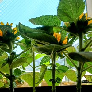 清々しい青空💙 みんな、🌞陽に顔を向けてます🌻 よく見ると脇に花芽かな? 顔を見せてください🌻 回れ~、右🫡 はい、可愛らしい⤴⤴⤴ 29度くらいまで気温が上がるそうなので、窓を開けて ひきこもりฅ( ˙꒳˙ ฅ)ヒキコモリ 風が抜けて気持ちがいい🎐🍃🌀🍃🎐 もう少しダラダラしようw