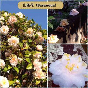柔らかい色の山茶花 たくさんの花で目立っていました