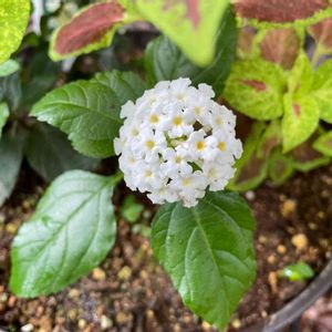 🏷️今日のお花 ランタナ 白花から黄色に移ろい〜 上にオレンジの七変化が〜 何番花❓かな〜