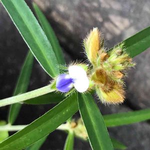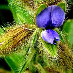 植物園の絶滅危惧種コーナーにて タヌキマメ 私好みの良い色の花♡ 毛を纏ってる様が狸のようだとか花が狸に似ているとか諸説ありますがこの花が狸に見えるには想像力を相当働かせないと私には難しい…