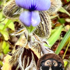 11/8㈫④ こてきちさん、りなははさん、 タヌキ祭 参加しま〜す😊 タヌキマメとタヌキと何故か共演🦉 大福帳持ってるタヌキと 福を呼ぶフクロウは相性いいみたい🤭 良い一日をお過ごしくださいね🤗🍀🍀🍀🍀🍀 マメ科クロタラリア属。 マメ科にしては珍しい葉ですが、夜にはネムノキのように閉じる動きをするそうです。 属名のクロタラリアはオモチャのガラガラを意味します。萼の中で乾いた種が縮むと、振るとカラカラ音がするそうです。 乾き切ると半分に割れて種を弾き飛ばすそうです。 向島百花園で出会いました♡