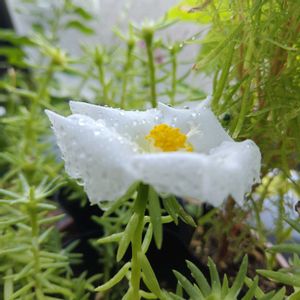 🏷️水滴の水曜日 🏷️雨粒シリーズ☆ 🏷️✨️水滴は魔法使い✨️ 🏷️白い貴婦人✨️ かねーちゃん 発信 🏷️✨️水滴は魔法使い✨️ ㊗️200pic突破🎉おめでとう💧💐🕺💃🎀💧 Verandaに咲いた 🤍マツバボタン…🤍🌿…の花で…(*^^*)…💐 これからも〜 益々増えて行きますように…💧💧(◕ᴗ◕✿)💧💧 🌸🤍🌱 💮🤍🌿… 今日は久々に☔☔…が…😉🤩🥳!!💃🕺!! おかげさまで…今夜は クーラーなし〜🙋🏻♀️🩵 今日もお疲れ〜 ゆっくり〜(-_-)zzz😴