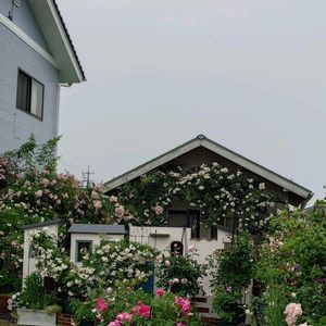 おはようございます😃 昨日は☂️😓 そんな中😊近くの秘密の花園さんのお宅に🤭 バラは☂️で散っていましたが😅 素敵なところでした😍 ⑤に私の鉢から作った多肉ちゃんのバスケットが飾ってありました😂✌️