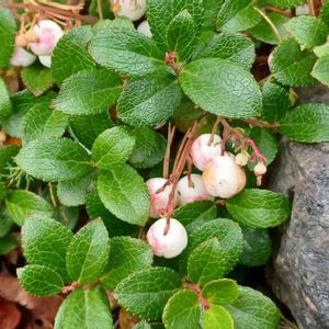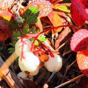 シラタマノキ 那須岳の山道脇にシラタマノキの、まさに白い玉の実が成っていました✨○✨。 シラタマノキは、果実を白い玉に見立てて名付けられました。 常緑小低木。地面に這うように小さな木です。 晩秋の陽光に白い玉が控えめに光ってました。 もうすぐ、雪で覆われてしまう白玉が愛おしく感じました。