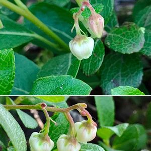 シラタマノキのお花です。季節が進むと、萼片が肥大し果実を包みこんで、白い実になります。そのため、赤い実をつけるアカモノに対してシロモノという別名があるそうです。以前ある湿原でガイドさんから実を試食させてもらったことがあるのですが、シラタマノキの果実はサロメチールの匂いがしますよ。分布は中部以北の亜高山から高山7/17万座周辺 メモ📝 ◾️クロマメノキの花とよく似ているが、シラタマノキの葉っぱは光沢があり、葉の縁に鋸歯がある