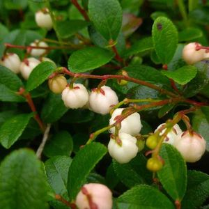 旭岳姿見駅からの散策路にて。 白くて可愛らしい実をたくさんつけた白玉の木の群落があちこちに。姿見駅付近は一度30cm程の雪❄️に覆われたそう。緑の葉も残っていて高山植物の逞しさを感じます。 *ツツジ科シラタマノキ属 *花びら状の萼片が成長して覆いかぶさり実を包む事で白い実ができる。