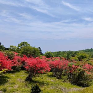 真夏日になった今日。 八方ヶ原へ。 平地と5℃位の気温差があります。 それでも半袖で十分。 暑かったですね。 山の駅たかはら周辺はツツジの花で紅く染まっています。 青い空、燃えるツツジ、新緑の山々。 大好きな癒やしの場所です🍀