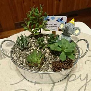 おはようございます😃 GWも終わり、、、でも末娘はまだまだ 学校🏫休みで私の真似ごとでタニク寄せ植えをやりたい❗️というので😉 2回目の挑戦‼️🌵 お披露目でーす🎉💖💖💖 遠くから見ればいい出来じゃない?😊 もう少しstayHome🏠がんばろうね❗️