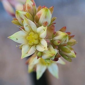 ✨リトルビューティー✨ ふっくらしてきた蕾が開きました とっても可愛い🥰 咲くなら春なのかなと思っていたのでビックリ❕ 多肉植物育て初めてから 初めて咲いた花に感動~~~😂