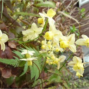 🏷️今日のお花 1⃣母のボーイフレンドから頂いたイカリソウ黄色💛 これはよく増えて何ヶ所かに飢えてる💛 2⃣退院後すぐに庭や畑探索した時に 咲いてるのを見つけて感激した ヒトリシズカ🤍 うっすらピンクが見えるのが、 元々家にあったピンクのイカリソウ🩷 年々小さくなって心配してたけど 無事に今年も咲いてくれた💓 どけて写真撮るのが難しくて後で 撮ろうと今日見たらもぅお花がなかった😿 3⃣これも同じく見つけたジジババ 春蘭さん😸 これも大株になってたのを 5年位前に母に株分け頼んだら、 バッサバッサと古株を捨てて 小さくなっちゃった💦 やっとたくさん咲いて くれるようになったよ💓 春の山野草祭り🏮😸 と言っても強いのしか残ってない💦