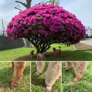 大きなツツジ 😻大きさわかりやすいかな💡 これが大きな間違い😱 犬たちの足にツツジの葉っぱ なかなか取れないよ。(ᵔᴥᵔ)