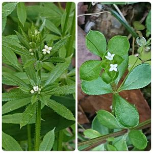 こんにちは🍀 続 道端でよく見かける、ちっちゃい ちっちゃい、可愛い似てるふたりです🌼🌼 ヤエムグラは子供の頃、よく服にくっつけてネコの絵にしたりして遊びました😸 ヤエムグラ (八重葎) アカネ科 ヤエムグラ属 越年草 葉は6〜8個が輪生し、先端は刺状にとがり、縁と裏面の主脈には逆向きの刺がある。本来の葉は2個で、ほかは托葉の変化したもの。 茎にも下向きの棘があり、実にも鉤状の毛が生えており、これにより衣服などに付着する。 花は直径約1.5mm。 ヨツバムグラ (四葉葎) アカネ科 ヤエムグラ属 多年草 葉は4個輪生し、先端は短くとがり、縁や裏面には白い毛がある。4個の葉のうち2個は托葉が変化したもの。 花は直径約1mm。 *ムグラ(葎)は、草むら、藪の意味。