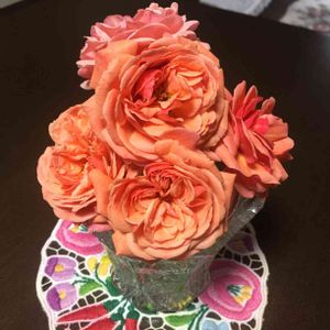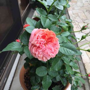 おはようございます☀ 夏の日差しを避けて、玄関に避難しているパウルクレー🌹 続けて咲いてくれます。 休ませなければいけないのかな?