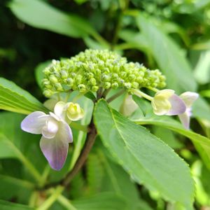 梅雨の気配を感じるこの頃 庭の一角ではギッシリ詰まった蕾たち 外側の方から少しずつ綻び始め ほんのりと色づき始めた萼 初夏の香りと梅雨入りの狭間で 爽やかで清々しいパステルカラー 萼紫陽花♍