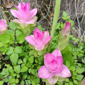 今日の仕事も無事終わって 家の近くまで来た所で 可愛らしいピンク色の花が目に止まった 爽やかなグリーンの葉っぱに見え隠れして 明るい笑顔が待っていた 毎年咲くこの場所で 今年も同じ様に咲いて出会えた事 仕事帰りの素敵な癒し 鬱金🩷🌱