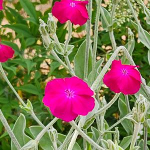 おはようございます(^-^)/ 雲ってます☁ 今日もガンバロー(^o^)/ ※皆様ご指南に感謝します 1️⃣2️⃣スイセンノウ!(訂正しました) 3️⃣春に紅葉するモミジ剪定した枝を花瓶へ!チト暑苦しい(笑) 4️⃣白南天の花蕾 5️⃣凄く立派な果物籠を頂いたけど4日経って切ってみたら殆ど⤵⤵🍍は半発酵している😮💨~ガッカリ~😖⤵シャ~ナイナ~ww ☆穏やかな一日であります様に🙏💛❤️💚🧡💜🩵🤍🩷