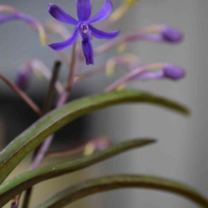 今回も蕾が3、4輪落ちてしまいました。 逆側にも花芽があり1輪蕾があったのですが、そちらもダメでした😞 狭い温室だから蕾がバンダの根に絡まったり、自分に蹴られたり それでも3輪は咲きました。