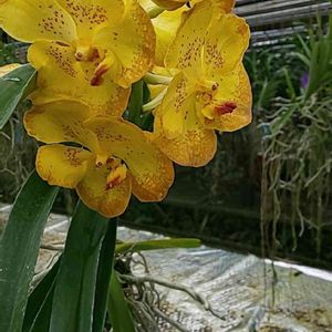 おはようございます。やっと咲きました!!黄色のバンダ こちらも販売していきますのでよろしくお願いしましまーす!!