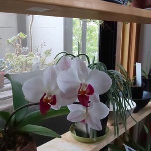 令和最初の日に一つ目の花が咲いたミディ胡蝶蘭。 1か月半かかって満開になりました。 ん!? 先っちょにもう一つ蕾が出てきたみたい。 まだまだ窓辺を飾ります😊