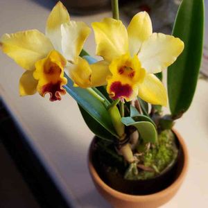 房咲きのカトレア。 すご〜い。と、思わずポチリ😅 箱を開けると、いい香り。 キツくはないけど、しっかり香ります。 届いた時に咲いていた花は、白にほんのりピンク。 でも、今日咲いた花を見たら、クリーム色。 咲き進むと、花の色が変わっていくようです。 ぷりぷりのバルブもかわいい❤️ 衝動買いだったけど、買ってよかった一鉢でした。 まだ蕾がたくさん。 しばらく楽しめます😊