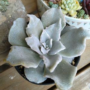 スワンレイクさん、実は名前買いだったけど、うちの環境に馴染んで元気を維持😄 ベビーを外して葉挿し用の葉っぱも何枚かもぎもぎ😊 pic2 昨日の葉挿しっ子とは別の先輩葉挿しっ子はベランダへ一軍扱いに😊棚の中段に。来年の春は上段に。 名無しの丼、縁が少し紅くなってきてる?😉キュッとしまってくれるといいなぁ🥹 🏷土曜日はわくわくフリルの日