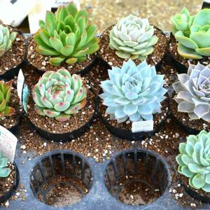 新入りさん紹介☺️ 今日、イベントに出店された碧midoriさんで購入した「いとうぐりーん」さんの苗5種。 手前の立派なラブリーローズは吉坂包装さんの苗。柳井市の園芸店で購入しました。グラプトベリア属と表記されてる。てっきりエケベリア属だとばかり😅