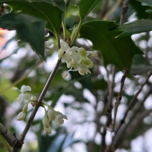 ヒイラギの蕾と花🤍 ヒサカキの蕾💚 千日小坊💜 小さくて可愛いもの💓💕