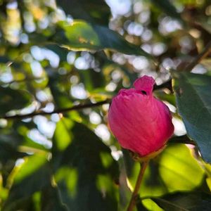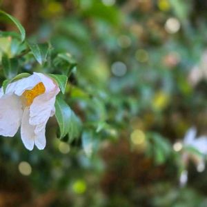 おはようございます👋😃☀️ 本来ならば濃いピンク色の山茶花💗 毎年下の方に数輪うっすらピンク色が入る白い山茶花ぎ咲きます🤍🩷 今年は3輪咲きました〜♪♬