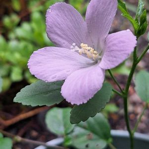 おはようございます👋😃☔ 💠今朝咲いた乙女色の花達💠 ①②ハイビスカス ロバツス ③④日日草 ④は蕾が花弁を突き抜けてます💦 ⑤朝顔