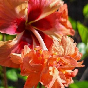 おはようございます👋😃☀️ ハイビスカス フラミンゴ🦩 オレンジ色が咲きました❇️ 夏ですね~☀️🌊🌺