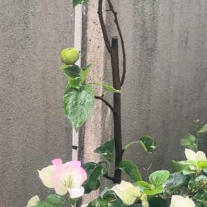 【季節の花華シリーズ:筏葛 & 幸水梨】《再投稿》 🌸イカダカヅラ;筏葛:Bougainvillea;ブーゲンビリア: 🍐幸水梨の幼い青い果実;Young green fruits of Kousui-pear 🌸ブーゲンビリア:Bougainvillea:筏葛;イカダカヅラ 品種;ピンクレディ この品種は、商品🏷️タグには「ペーパーフラワー ブーゲンビレア ハワイアンシリーズ」「ピンクレディ」と書かれていました🌸 📝この写真画像は、ベランダで植栽・養生中の様子を撮ったもので、4月27日に投稿したのと同じ物で、今年2回目の開花で、白い花色をベースに淡いピンク色のグラデーションが観られてとても綺麗に咲いています。 【一歌献上】 「*さやけしき筏葛の美々しきや 天辺に添う梨の果実や」 @訳意;The bright, pure and refreshing bougainvillea is blooming very beautifully.There are blue pear fruits on the top. ;明るく、清らかで爽やかなブーゲンビリアがとても綺麗に咲いています。天辺には青い梨の果実が成っています。 📖*さやけし;明けし、清けし、爽けし。「けし」は接尾語 ✍️Works;Poetaster Kazyan//筍歌人:藪中和堂 📖幸水梨:豆知識 🍐幸水梨は、日本で最も多く栽培されている梨で、その人気は全国各地に広まっています。 旬の時期は8月上旬から中旬にかけてですが、ハウスものは7月上旬から出回っていることもあるので、逃さずゲットしたい人はこの時期から売り場をチェックしてみましょう! 🗒️ジューシーな甘みと、シャキシャキとした歯ごたえを合わせ持つ、幸水。 贈答品やふるさと納税の返礼品としても人気なので、気になる人は各産地の通販サイトをぜひ覗いてみてください。 Artistic;Bougainvillea flowers with young blue Kousui-pear fruits June 9,2025:past am 07:30’;📱shooting June 9,2025:past am 09:30';upload by Kazyan’s Green Studio
