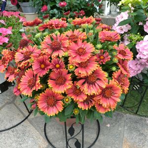 こんにちは☀ ①Hakusanさんのガイラルディアスピントップ イエロータッチ🎵 咲いてきましたー😃 蕾も控えているのでまだまだ咲きそうです😊 何年目だろ??? ②サフィニアプレミアムのコーラル🎵 SUNTORYの今年の新品種‼️ 4色ありコーラルを選びました。 成長早いです🎵😃 ③ビューティカルのボルドー🎵 今年で3年目。 人気のビューティカルです。 今日の11時頃まで雨降ってて雨ざらし。 雨上がってから3時間後くらいに撮影しました📷️ 雨に強いですね‼️