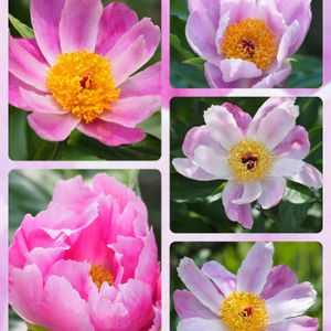 今日のお花 ✼芍薬‥シャクヤク ➀半八重咲きのピンク色と ➁八重咲きの🤍 咲き方の様変わりが可愛くて コラージュです(♡˙︶˙♡) 庭の花便り𓂃𓂂𖡼.𖤣𖥧𓈒◌܀✉🕊𓂃