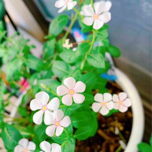 こんにちは😃🌞 本日4回目の幸せ顔さん(•ө•)♡ 🌼 ビンカ❤︎ピーチオレ 🌼 こちらもだんだん復活してきました! しかし、枝ぶりはスカスカ〜💦