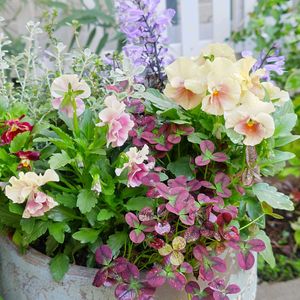 ❊❊パンビオの寄植え❊❊ やっと時間ができて、 パンビオ寄植え出来ました♪ ドラキュラととらさんビオラ🐯